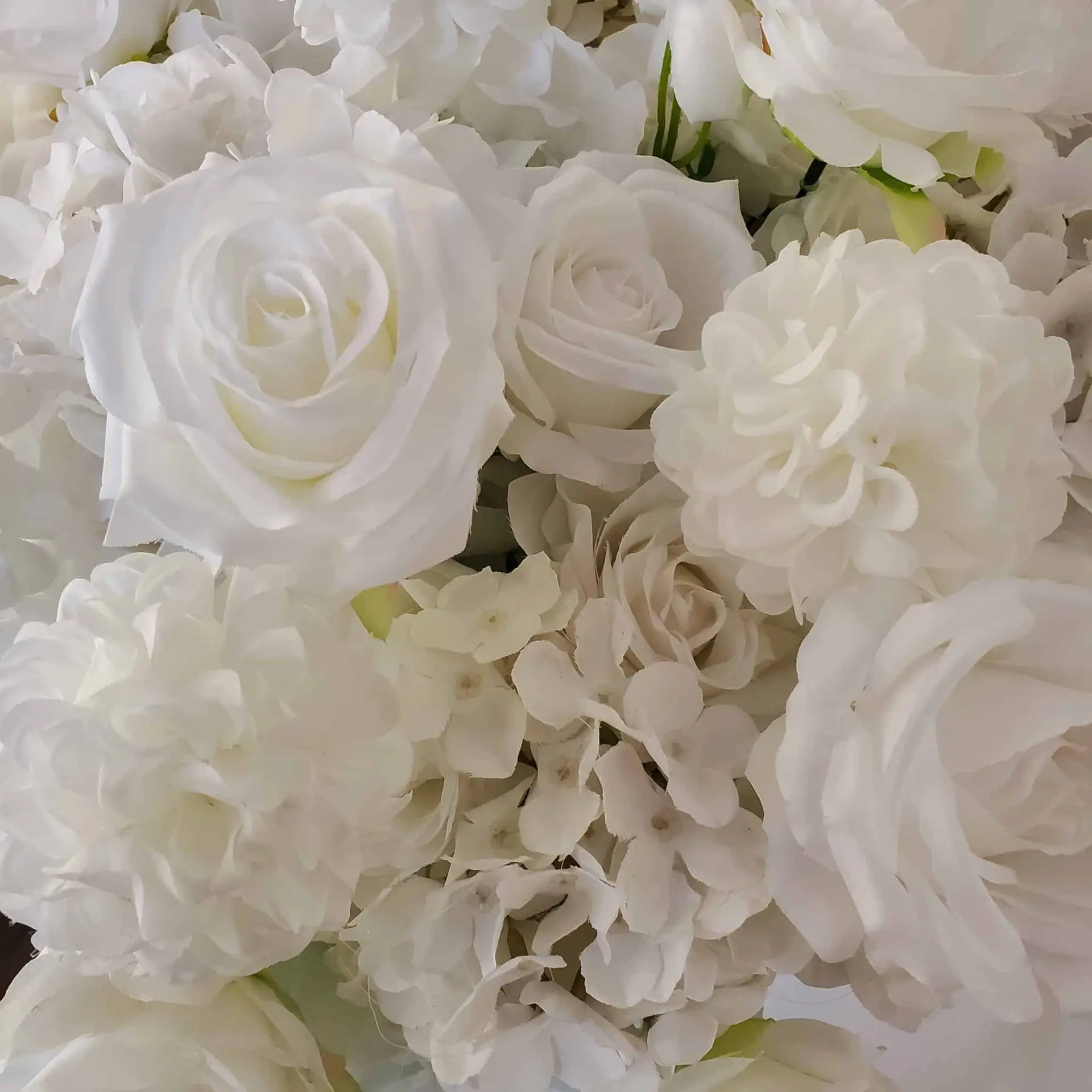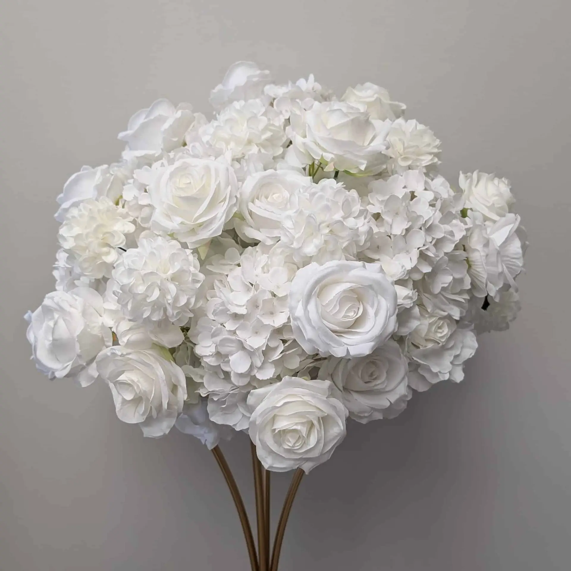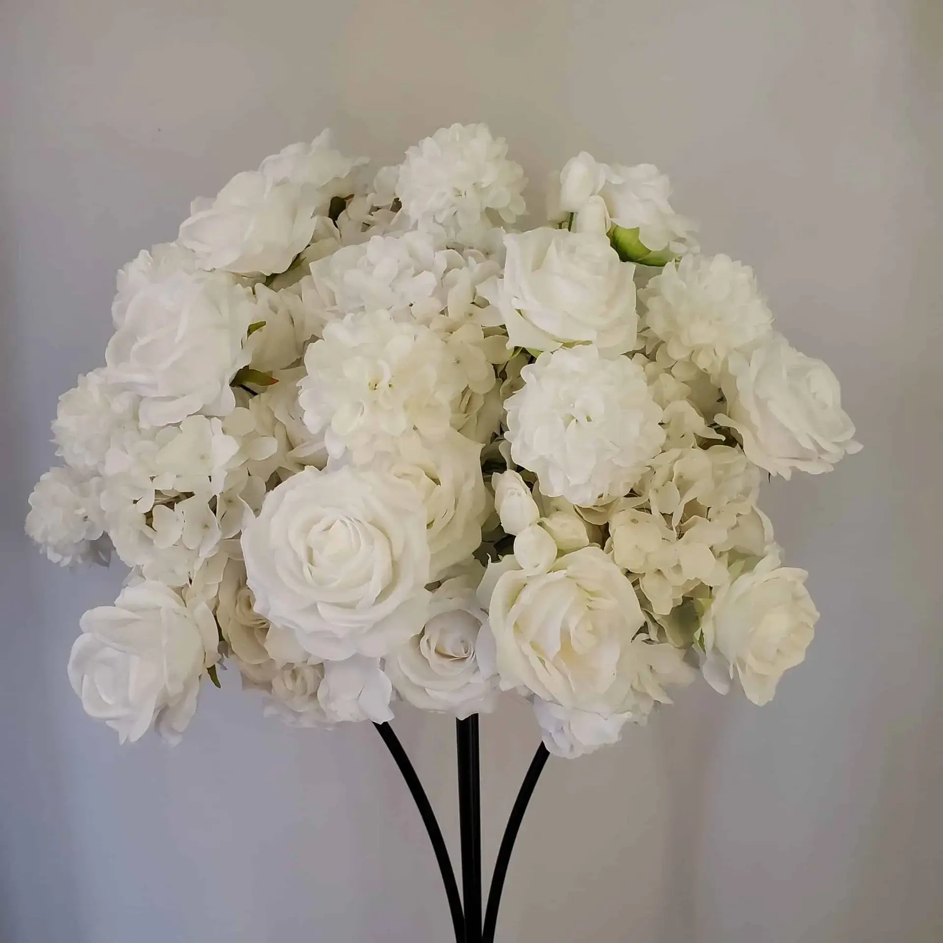 Save time and money with this gorgeous premade White Rose & Hydrangea Flower Ball Centerpiece.  With a flat foam base, you can easily display these flower balls on any centerpiece, plinth, or even on the ground.