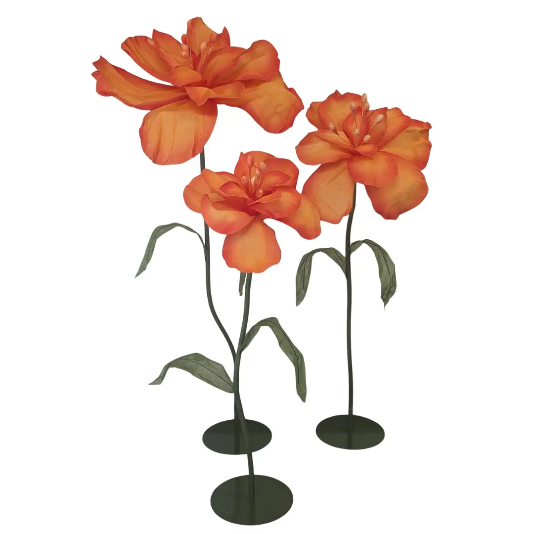 These showstopping Giant Flowers are a whimsical and unique addition to your decor. An excellent choice for a wide range of event themes. These flowers are made with a waterproof EVA material, making them suitable for outdoor use. Wired petals and flexible yet strong bases make for a completely customizable look.