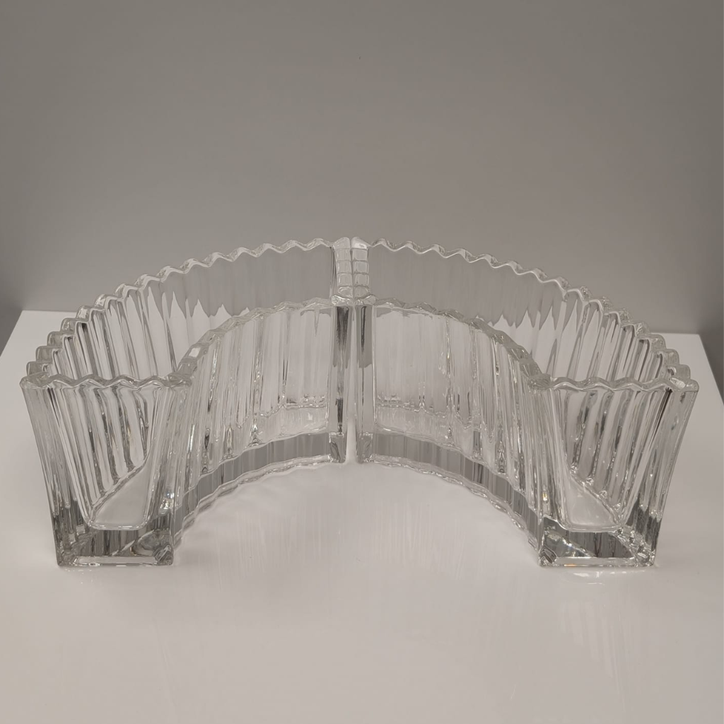 These clear glass curved design dishes are the perfect base for your floral arrangements and centerpieces. With a unique textured glass look, these are an excellent way to elevate your floral designs!