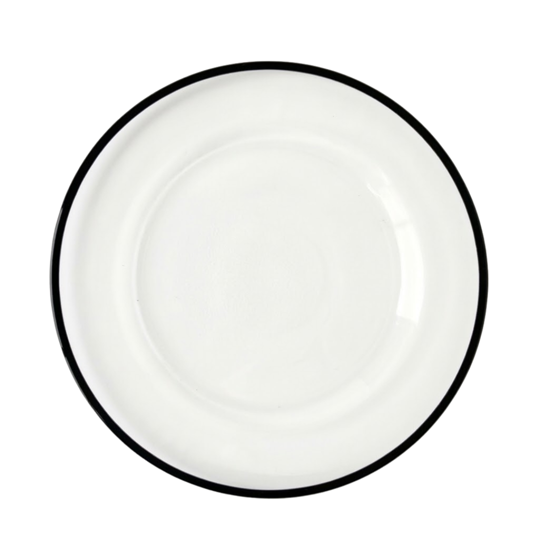 What better way to upscale your event then to add charger plates. These 13″ Dia. clear charger plates have a beautiful black accent edge and scream to your guests/clients that you know how to throw a classy event.