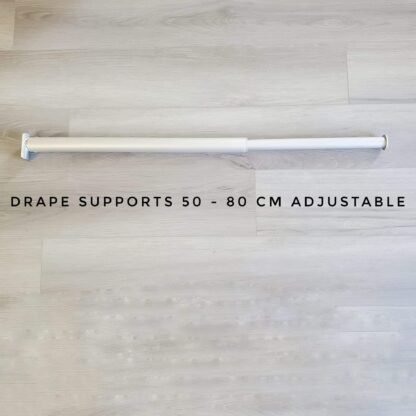 This handy piece of hardware can be used to easily create a variety of different backdrops. They slide onto any upright giving you the ability to attach the to backdrops to create small side panels or hand décor such as lighting (including chandeliers up to approximately 6lbs), crystals, florals and more. Another way to use them is with a single upright and two drape supports to create a small low profile backdrop with a small footprint. These drape supports are also adjustable from 50cm to 80cm, giving you more ways to create!