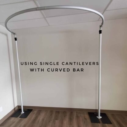 The single cantilever bracket will allow you to attach a curved bar to make a curved backdrop, entrance, ceremony, etc.  Two single cantilevers  are required for the curved backdrop.